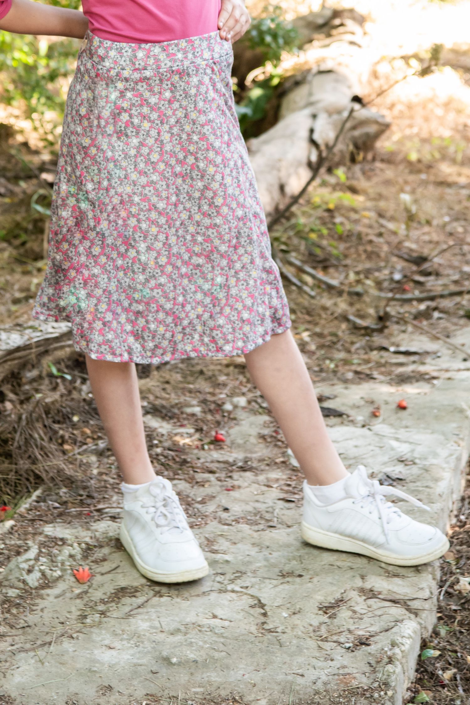 חצאית פרחונית מקסימה, קלילה ונוחה מבד טריקו מודפס