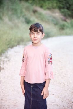 חולצה חגיגית יפיפיה מבד במגע רך ונעים במיוחד! בשילוב ריקמה ושרוולי פעמון