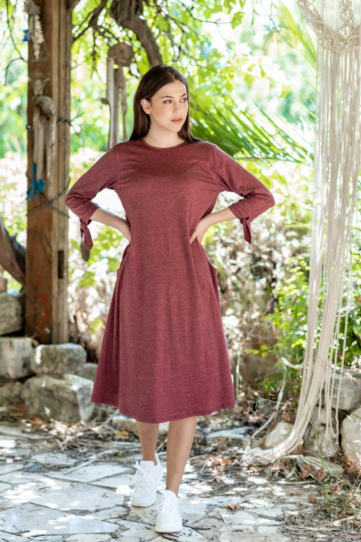 שמלת מלנג' קלילה ואופנתית בשילוב כיסים ושרוולים מיוחדים