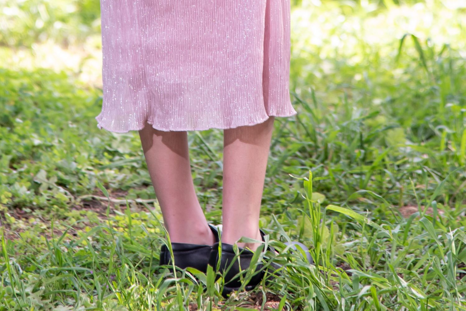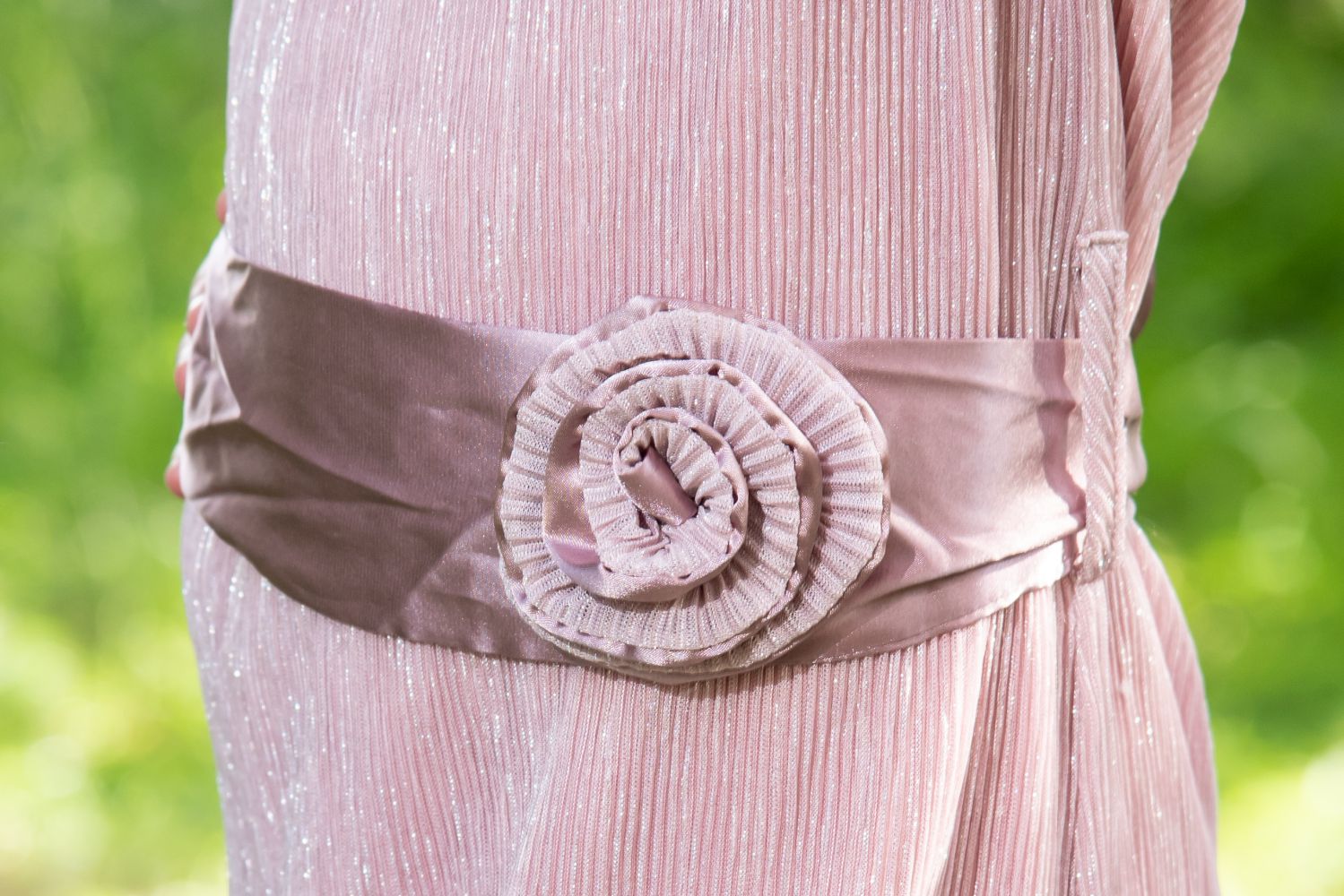 שמלה חגיגית יפיפיה מבד שיפון בשילוב פסי לורקס, אופנתית ומיוחדת!